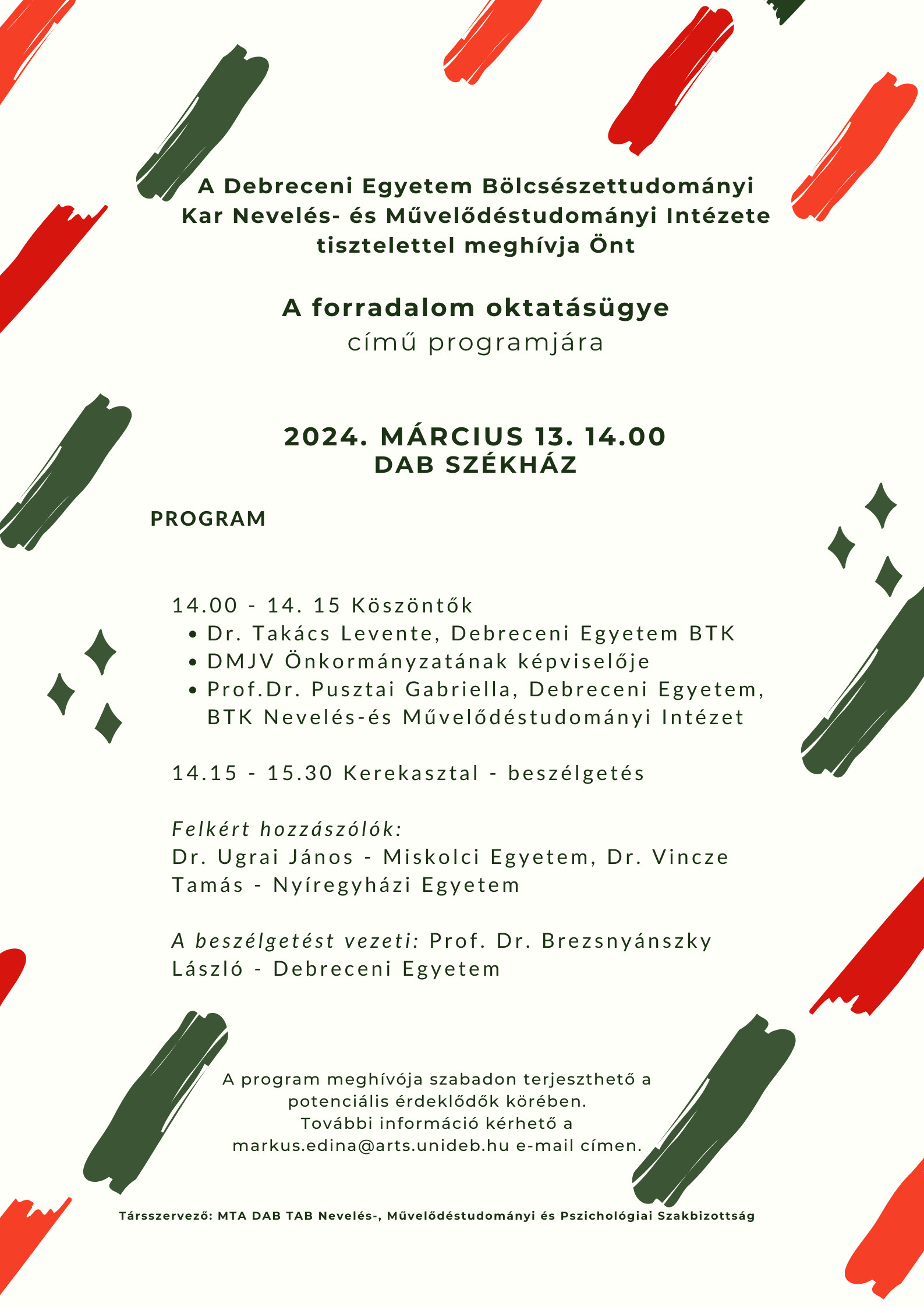 Bővebb információ: Márkus Edina, markus.edina@arts.unideb.hu