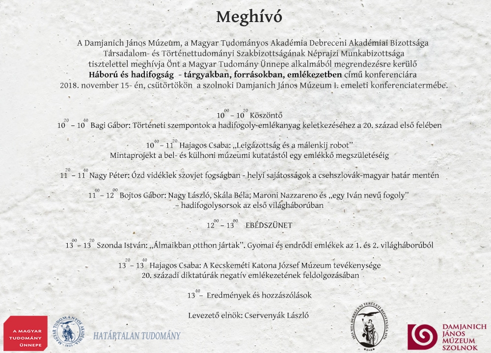 Háború és hadifogság – tárgyakban, forrásokban, emlékezetben