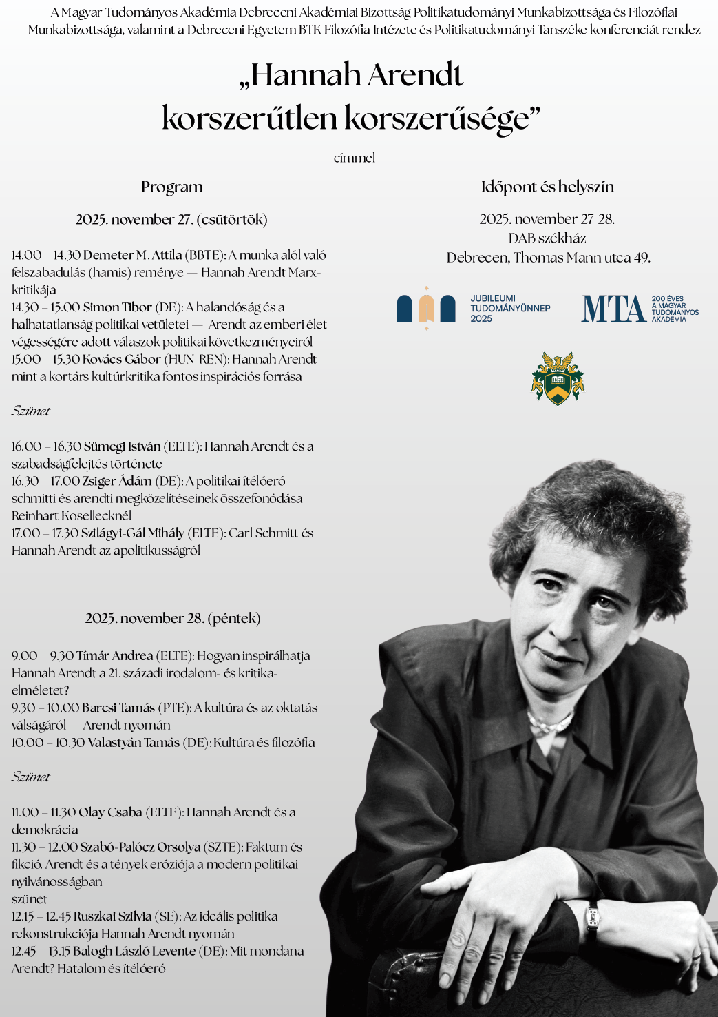 „Hannah Arendt korszerűtlen korszerűsége” című konferencia