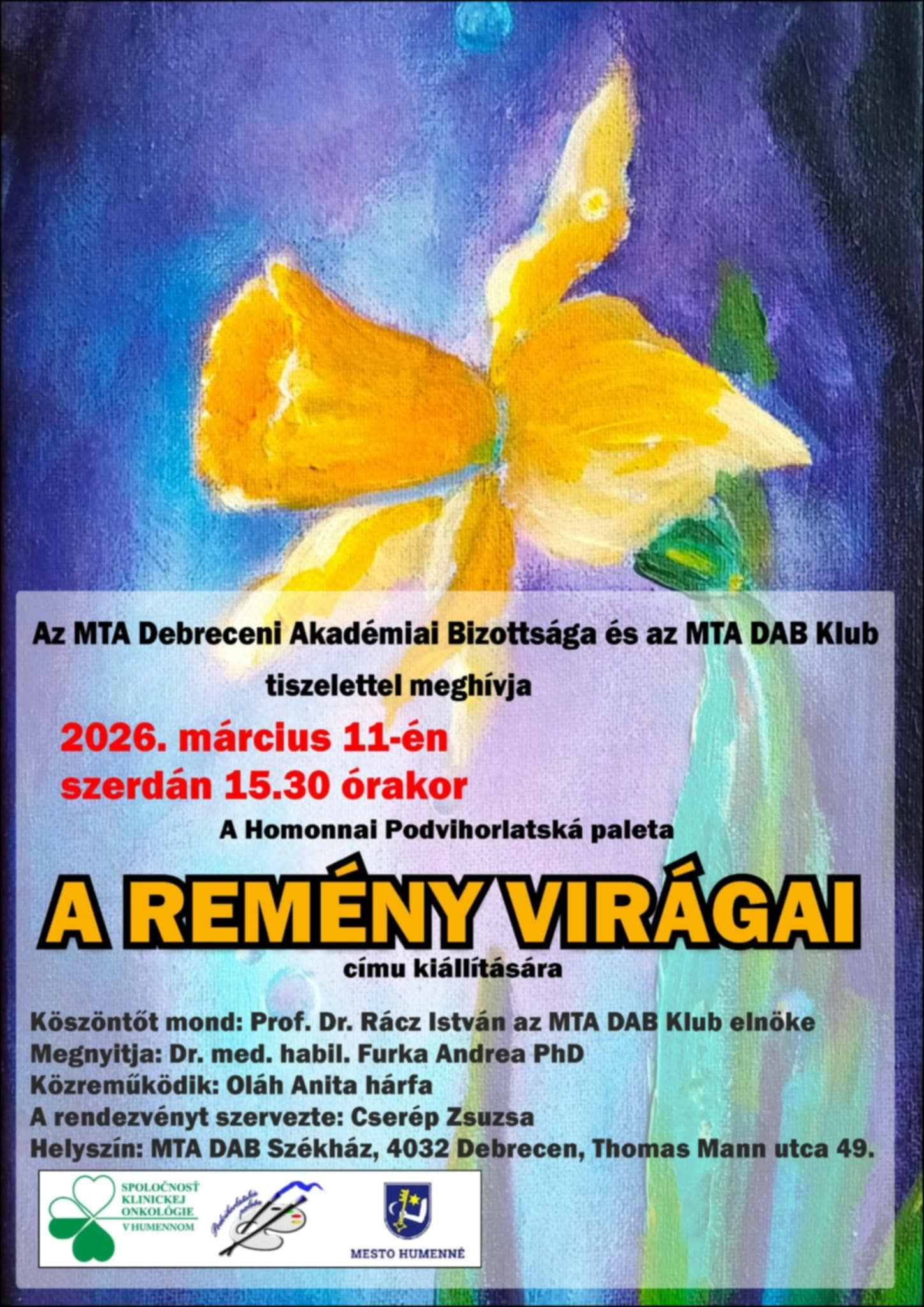 MTA DAB Klub: A Homonnai Podvihorlatsá paleta "A remény virágai" című kiállítás megnyitója Helyszín: MTA DAB Székház