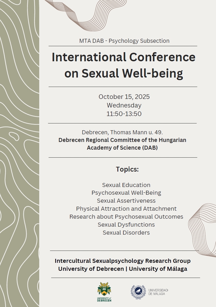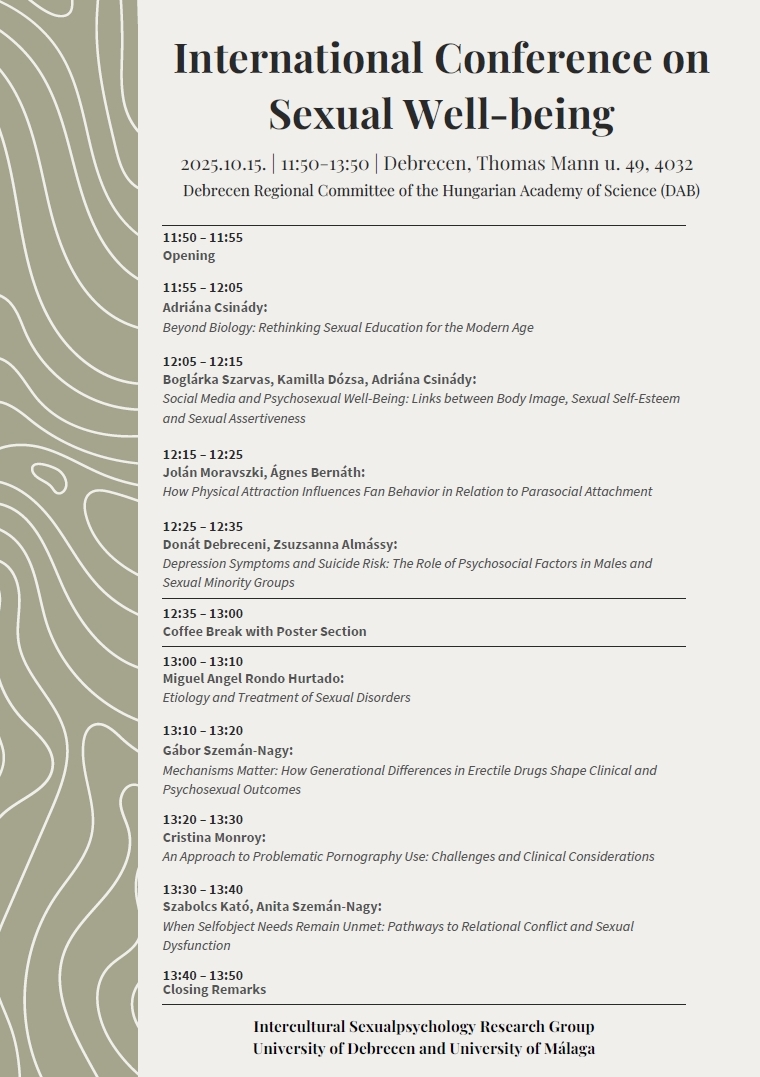 MTA DAB - Psychology Subsection: International Conference on Sexual Well-being Location: MTA DAB Headquarters Program