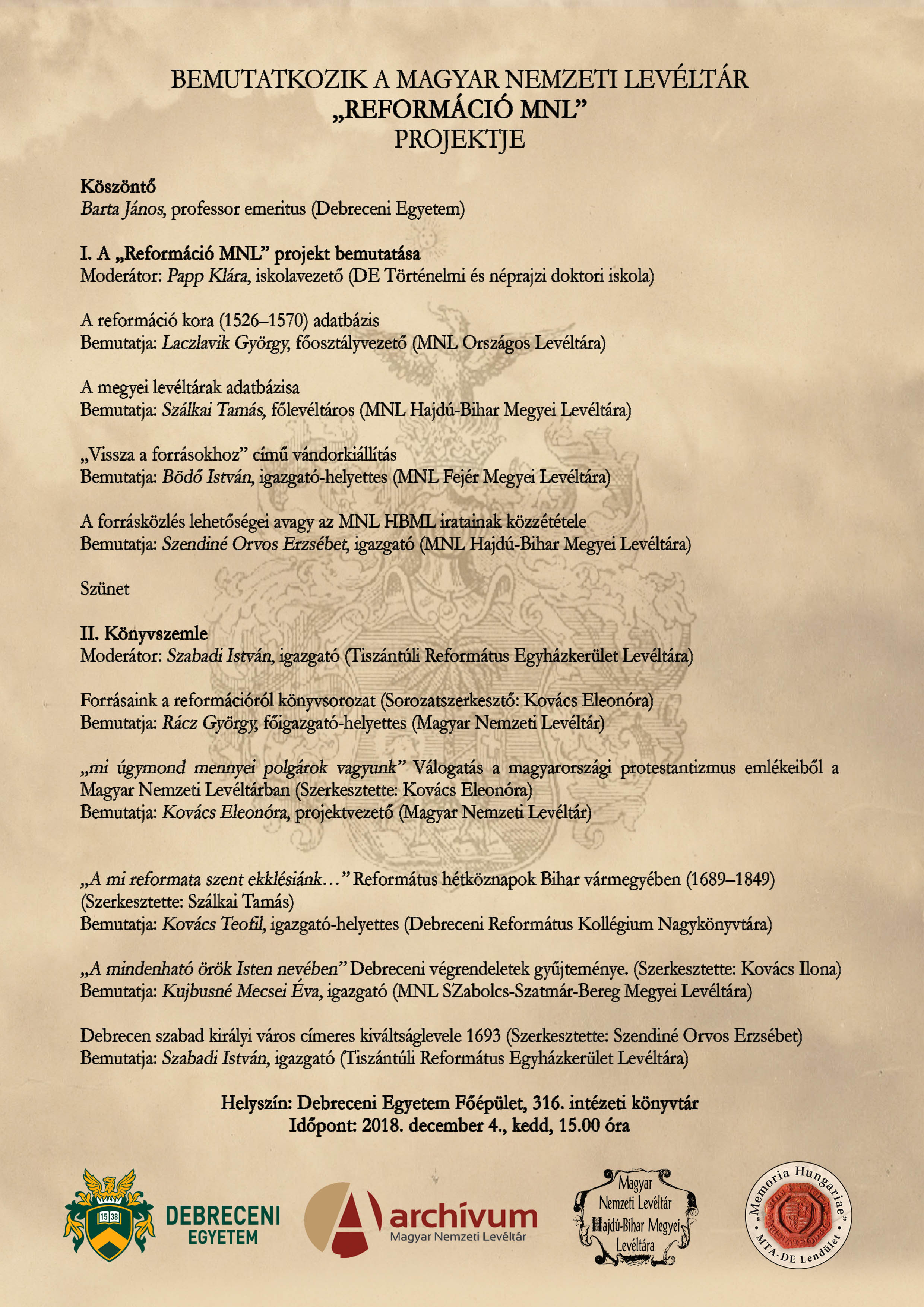 Bemutatkozik a Magyar Nemzeti Levéltár "Reformáció MNL" projektje