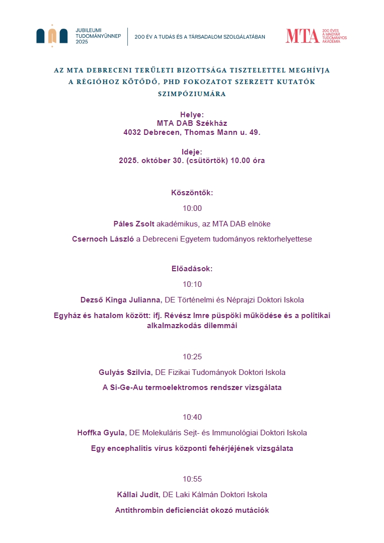 A régióhoz kötődő, PhD fokozatot szerzett kutatók szimpóziuma