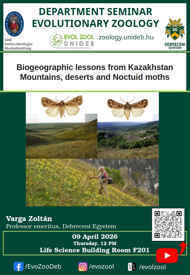 Tanszéki szeminárium/DE EvolZoo Seminar: Biogeographic lessons from Kazakhstan Mountains, deserts and Noctuid moths Helyszín: Debreceni Egyetem Élettudományi Épület, 2. szakasz, földszint, Udvardy terem (F201)