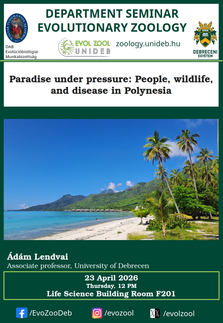 Tanszéki szeminárium/DE EvolZoo Seminar: Paradise under pressure: People, wildlife, and disease in Polynesia Helyszín: Debreceni Egyetem Élettudományi Épület, 2. szakasz, földszint, Udvardy terem (F201)