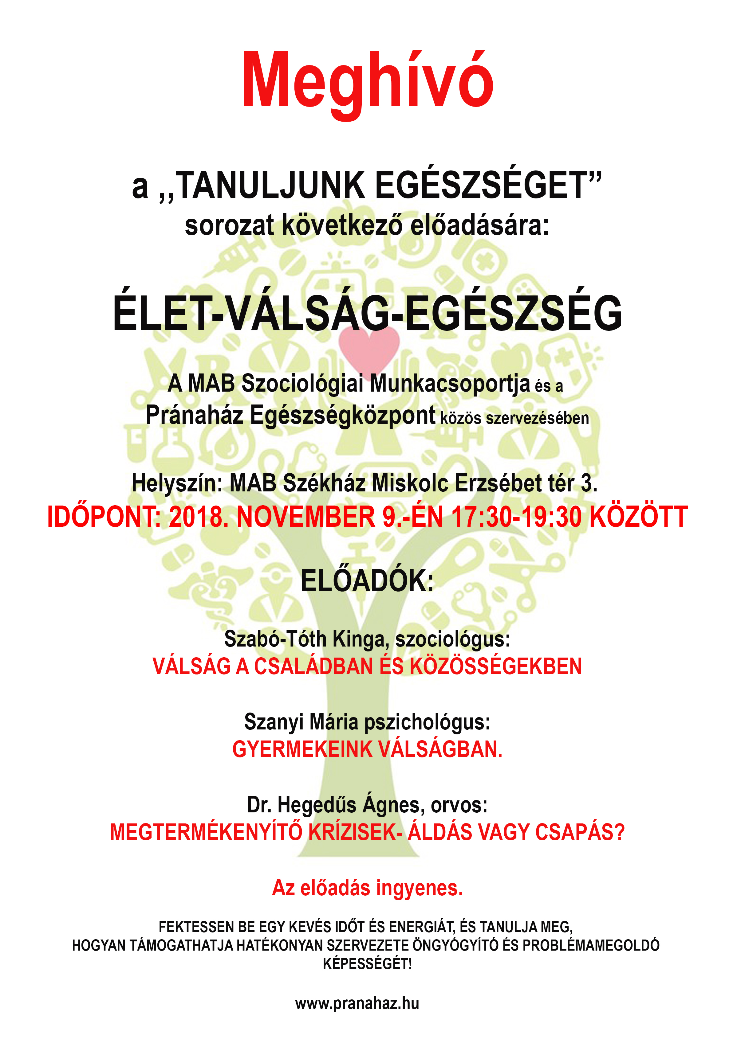 a MAB Szociológiai Munkabizottsága és a Pránaház Egészségközpont közös szervezésében