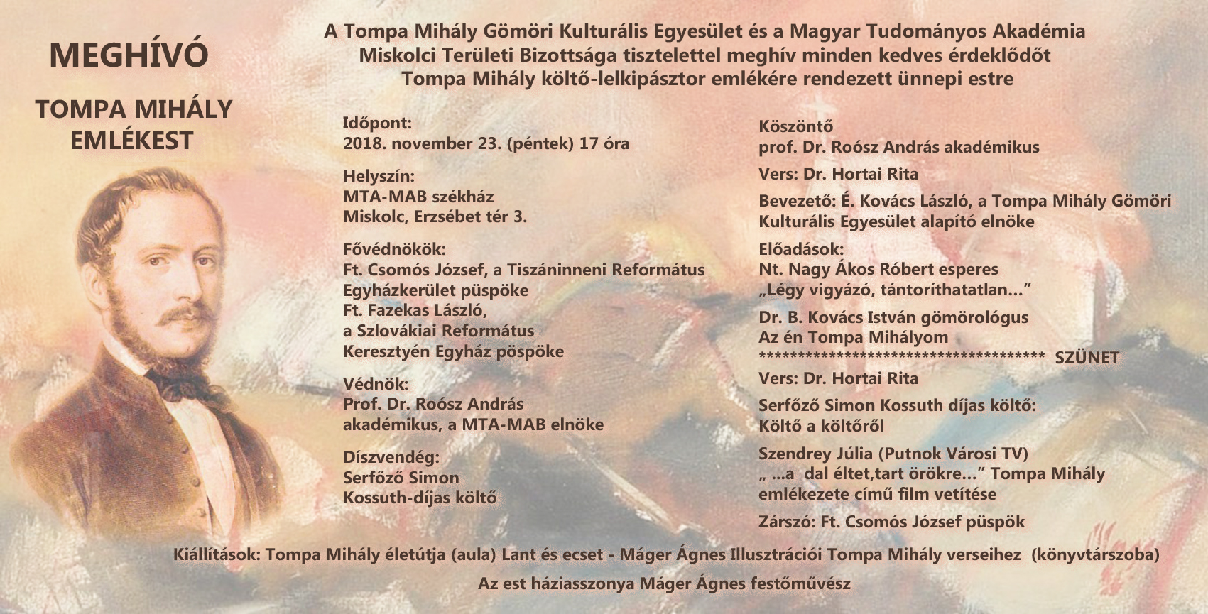 Kiállítások: Tompa Mihály életútja (aula)