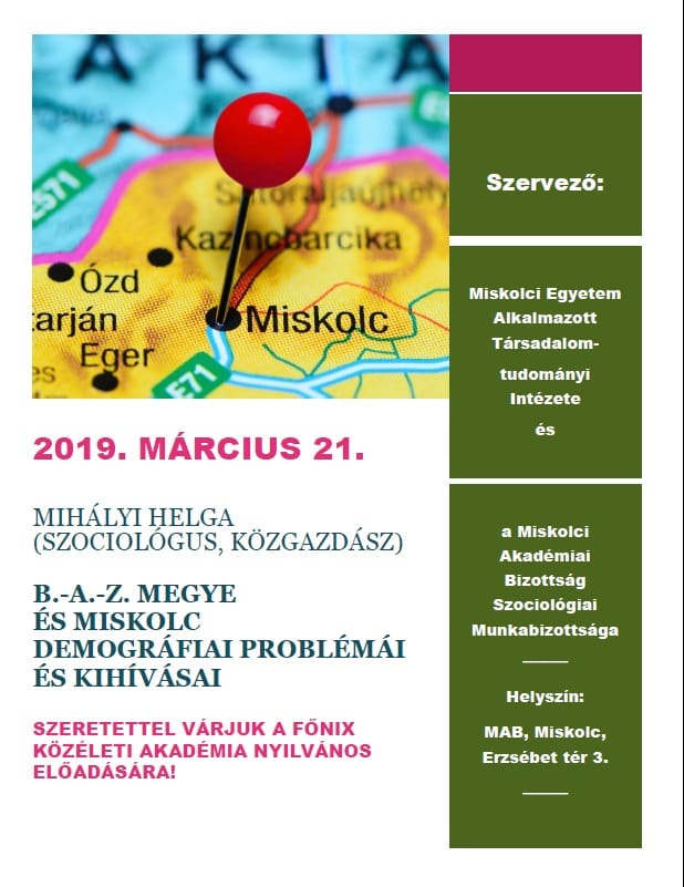 Helyszín: MTA MAB Székház (Miskolc, Erzsébet tér 3.)