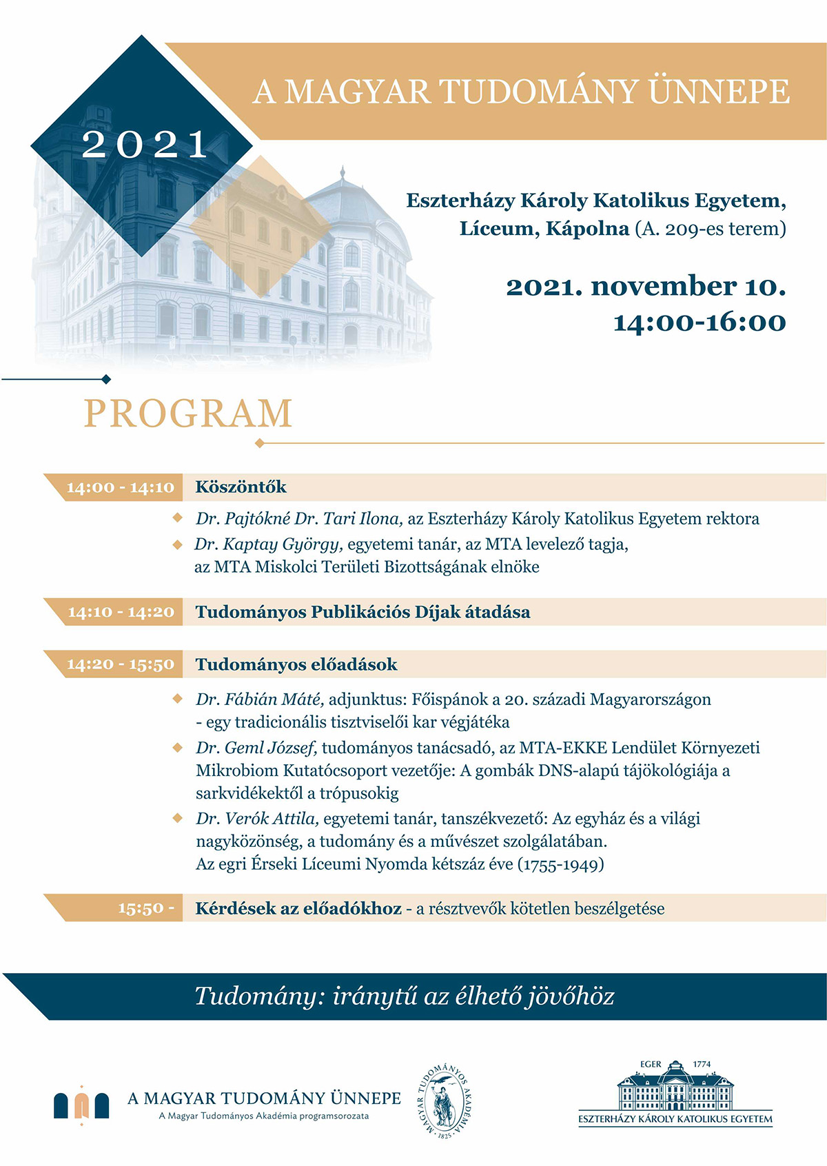 Helyszín: EKKE Líceum, Kápolna (A. 209-es terem)