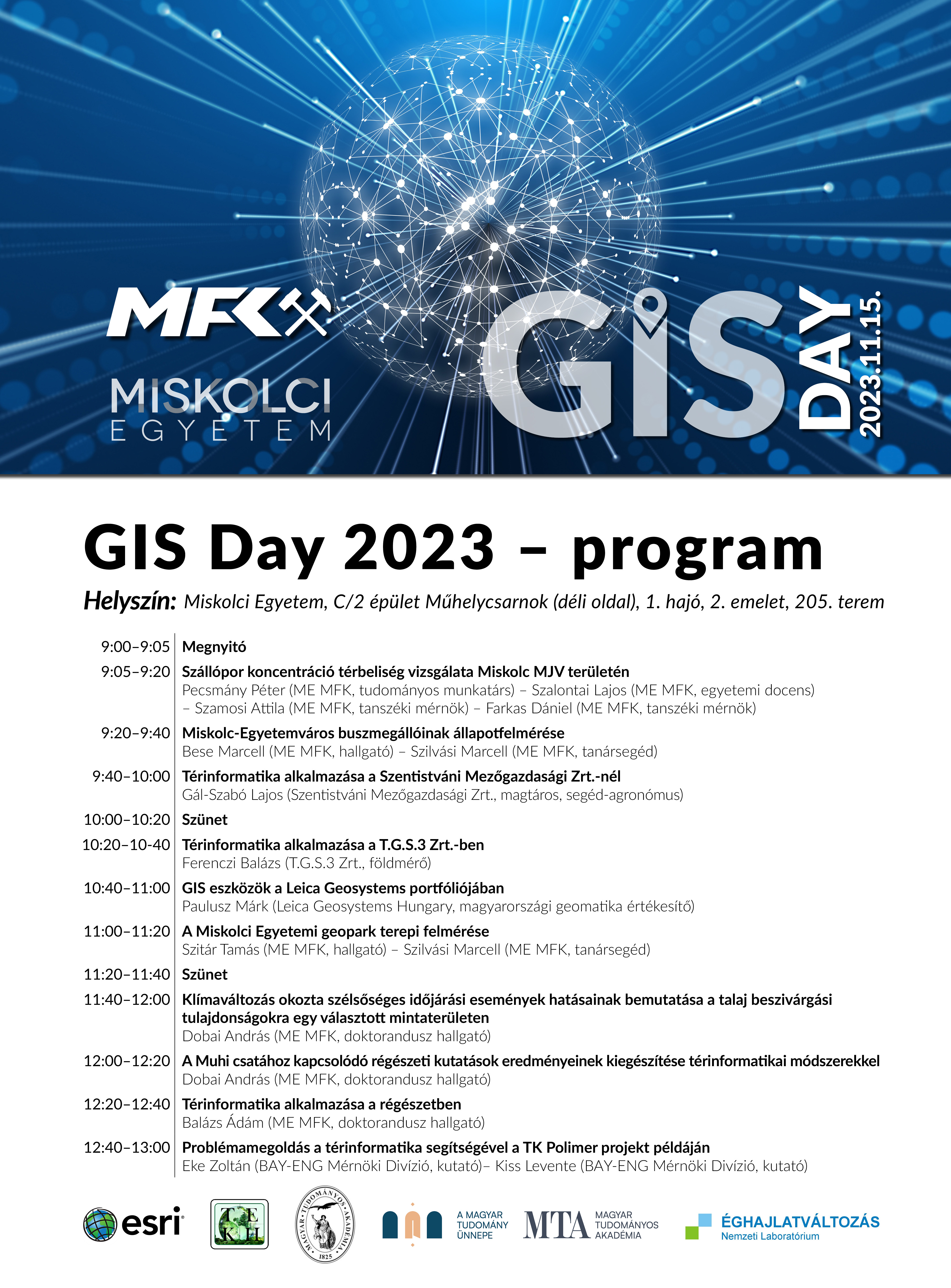 Helyszín: Miskolci Egyetem (Misklolc-Egyetemváros, C/2 épület 205. előadóterem)