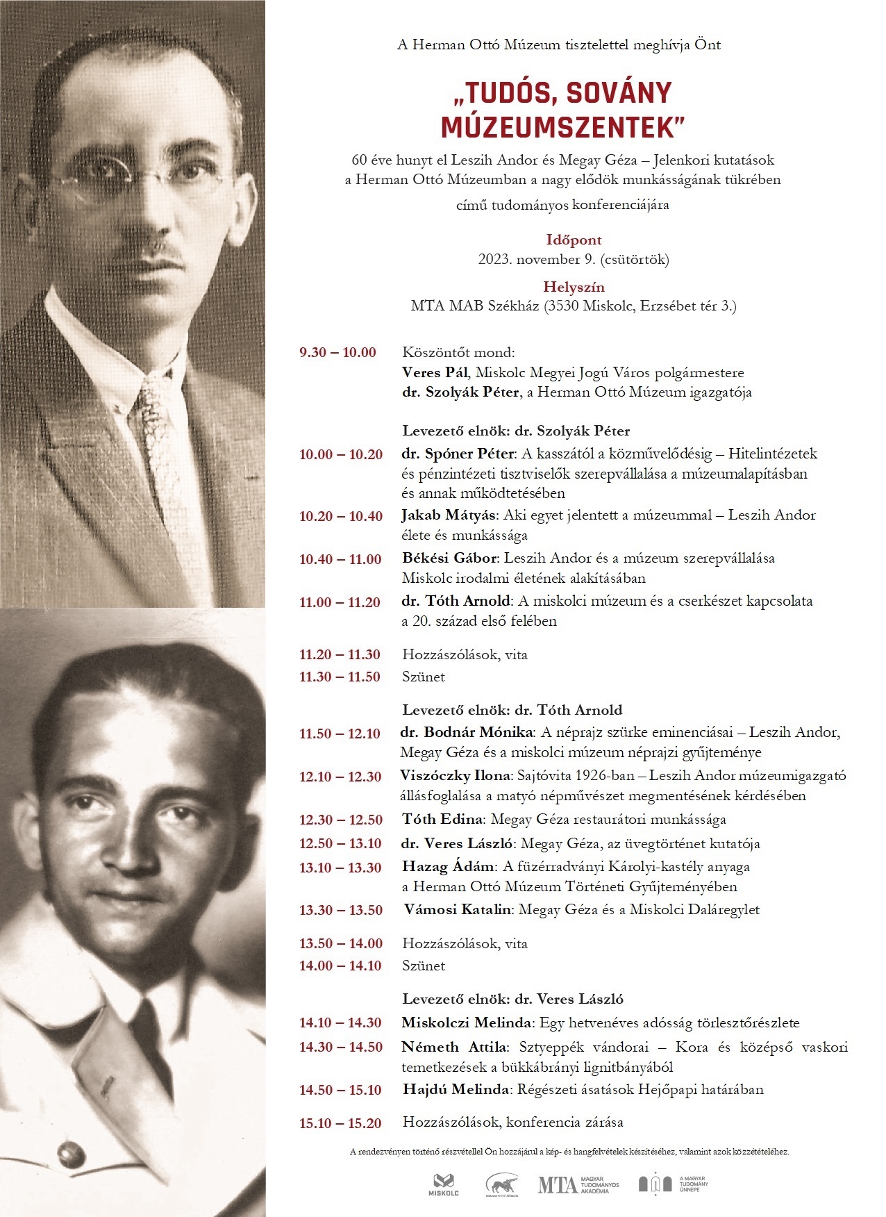 60 éve hunyt el Leszih Andor és Megay Géza – Jelenkori kutatások a Herman Ottó Múzeumban a nagy elődök munkásságának tükrében című konferencia