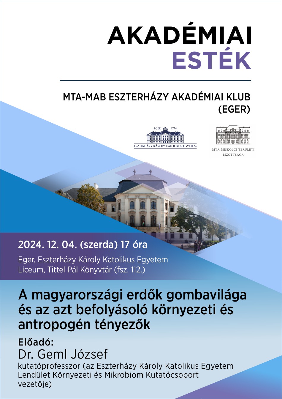 Helyszín: Eszterházy Károly Katolikus Egyetem Líceum, Tittel Pál Könyvtár (fsz.112.)