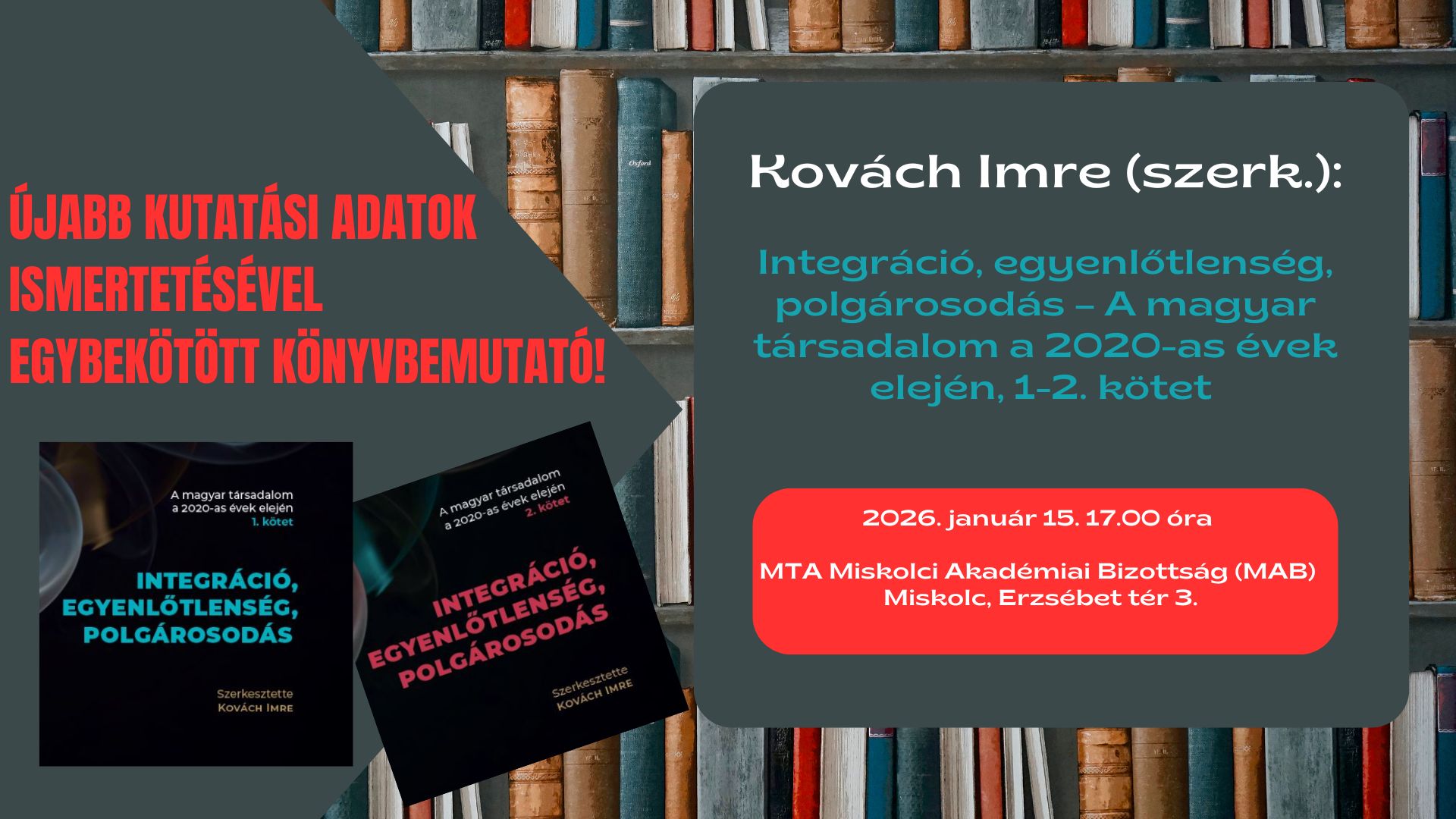 A Kovách Imre által évek óta vezetett, társadalmi integrációról és egyenlőtlenségekről szóló kutatássorozatban eddig megjelent kötetek után a most bemutatásra kerülő kétkötetes könyv a szintézis szándékával született a 2020-as évek elejének magyar társadalmáról.