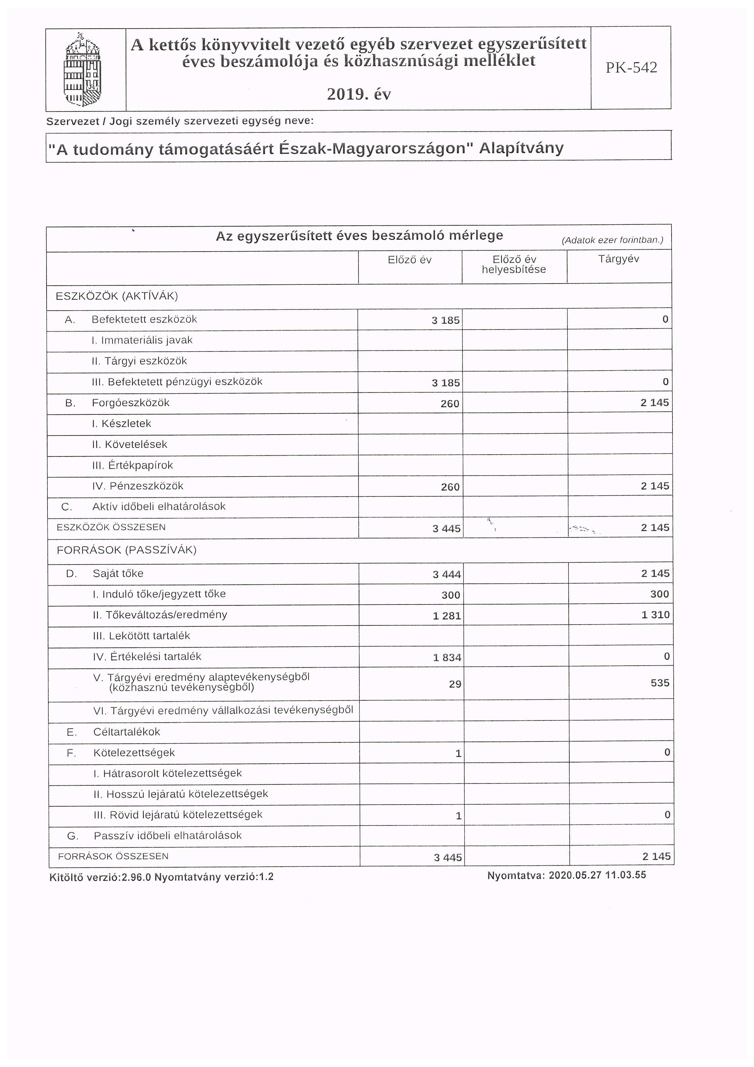 2019. évi mérleg