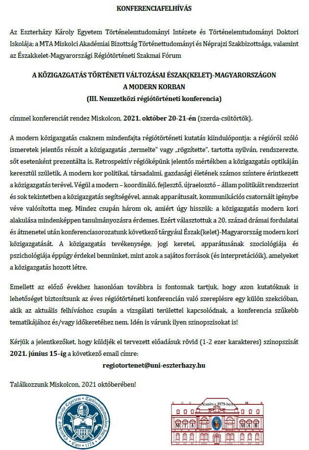 Helyszín: MTA MAB Székház, Deák terem (Miskolc, Erzsébet tér 3.)