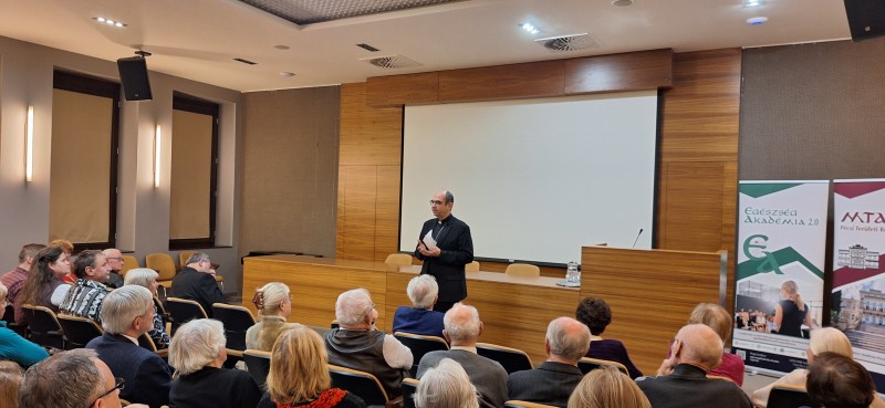 Az Egészség Akadémia évadzáró előadását Székely János teológus a Szombathelyi Egyházmegye püspöke a Magyar Katolikus Püspöki Konferencia elnöke tartotta teltház elött.