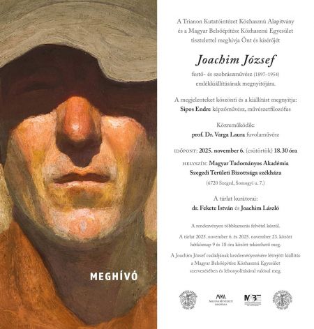 Szeged városának egykor elismert művésze volt az 1897. szeptember 25-én született Joachim József szobrász- és festőművész. A haladó szellemiségű, egyedi hangon megszólaló alkotót, aki szobrászatban az akadémikus, ám magabiztos és klasszikus formaképzést, festészetben a neoimpresszionista színvilágot képviselte, az első világháború utáni magyar művészgeneráció egyik kevéssé ismert alakjának tartják. Életművébe egy 2025. november 6-án nyíló emlékkiállítás nyújt betekintést, amely a család kezdeményezésére kerül a szülővárosba. A tárlat a magyar tudomány ünnepe alkalmából nyílik a Magyar Tudományos Akadémia Területi Akadémiai Bizottsága épületében, a Magyar Művészeti Akadémia Szegedi Regionális Munkacsoportjának támogatásával.