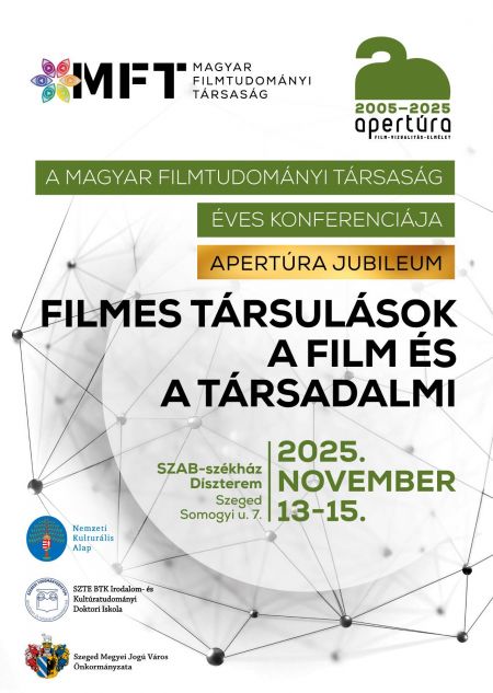 A Magyar Filmtudományi Társaság Éves Konferenciája | Apertúra Jubileum | Filmes társulások a filmé és a társadalmai 2025.11.13-15. | SZAB székház | 103-104 díszterem