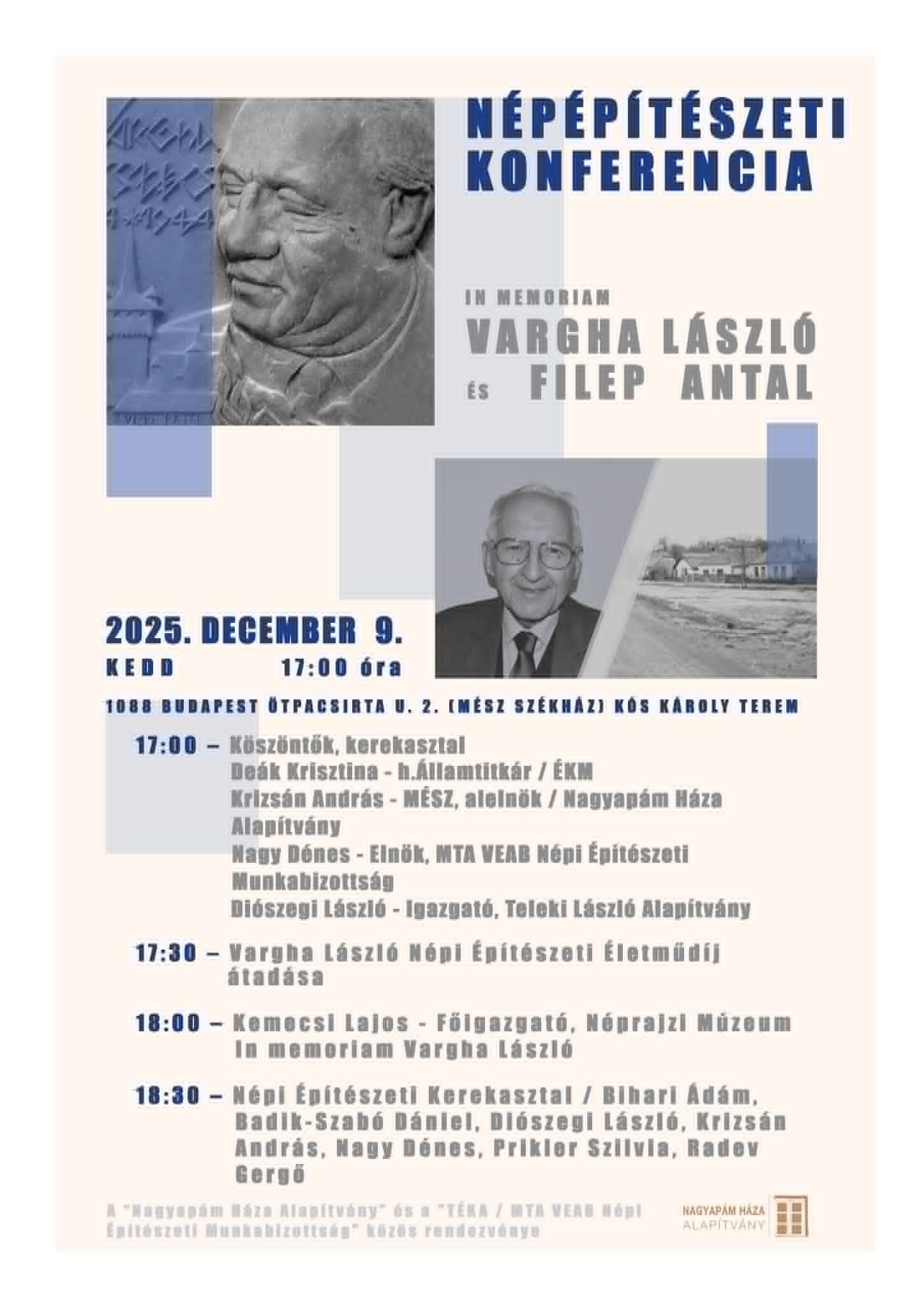 Az MTA VEAB Népi Építészeti Munkabizottsága/TÉKA és a "Nagyapám Háza Alapítvány" tisztelettel meghívja Önt a