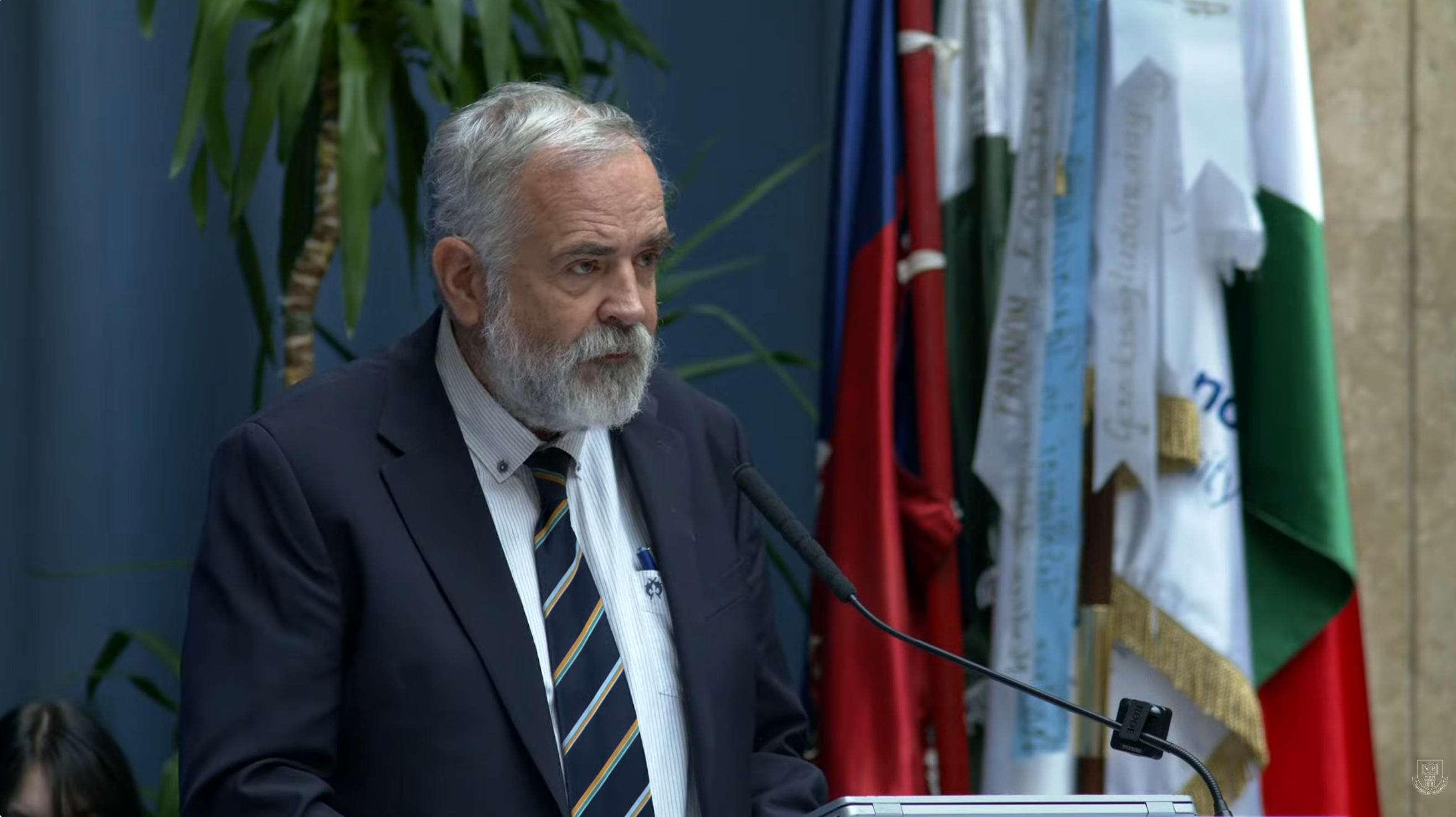 Kiemelte, hogy a tudomány nem hideg racionalitás, a tudomány szenvedély: „szenvedély a megértés iránt, szenvedély az igazság iránt, szenvedély egy jobb világ iránt.” Hangsúlyozta a közösség erejét is:”…a tudomány nem magányos géniuszok munkája, hanem közös erőfeszítés, ahol mindenki hozzáad valamit a nagy egészhez.” Ünnepi beszédét rendhagyó módon egy köszönetnyilvánítással is megszakította, Padisák Judit akadémikus asszonynak, az Egyetemi Doktori és Habilitációs Tanács leköszönő elnökének gratulált, megköszönve a professzor asszony áldozatkész, segítő munkáját.